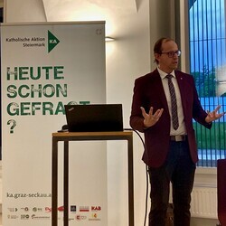 Im von Kathrin Karloff moderierten Gespräch mit Andrea Seel, der Rektorin der Privaten Pädagogischen Hochschule Augustinum, Michael Axmann, dem Superintendentialkurator der Evangelischen Kirche Steiermark und mit Andreas Gjecaj, dem ehrenamtlichen Präsidenten der Katholischen Aktion Steiermark, führte Weiß zudem aus, was es aktuell konkret brauche, um mit engagierter kirchlicher Bildung – mit elementarpädagogischen, Hochschul- und Erwachsenenbildungsangeboten – Veränderungsprozesse in Gang zu setzen, die sich an konkreten Bedürfnissen der Menschen orientieren.
