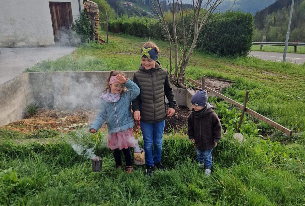 Baumschwammes auf die Herdplatte gelegt, was im Zeitalter der Elektroherde schon sehr selten geworden ist, oder das Haus wird eingeräuchert. Früher wurde mit dem geweihten Feuer am Karsamstag das Herdfeuer entzündet, um damit das Osterfleisch zu kochen.