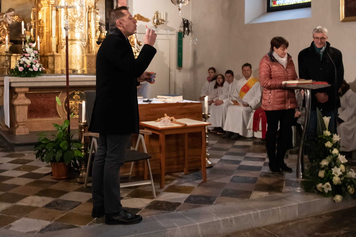Festlich gestaltet von unserem Pfarrer Claudiu Budãu und Diakon Wolfgang Garber. Sehr schön war die Segnung der Paare.