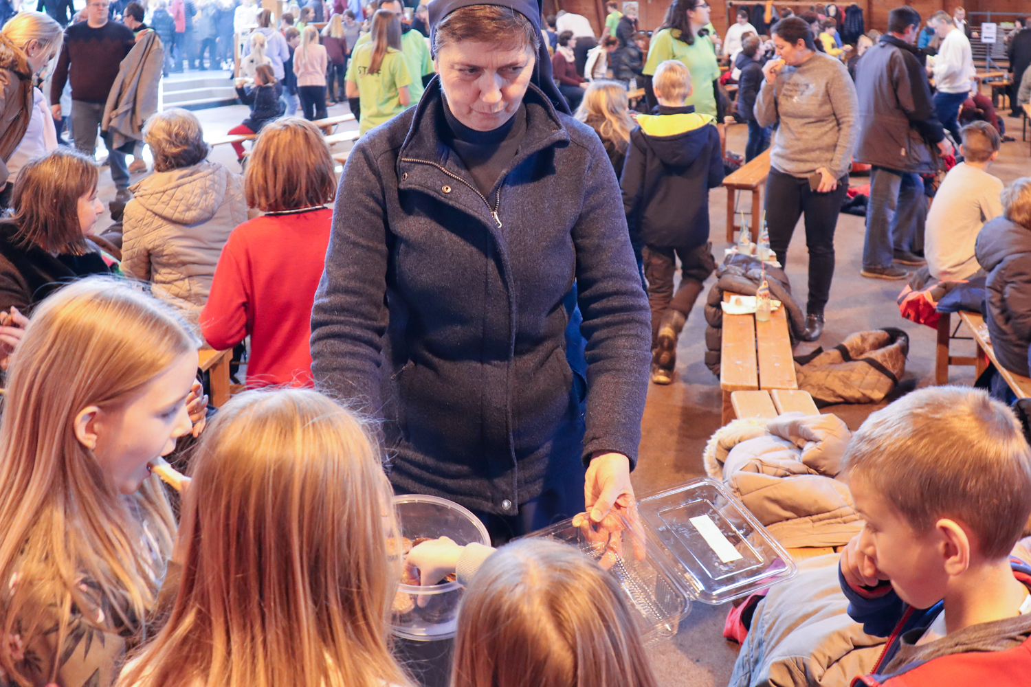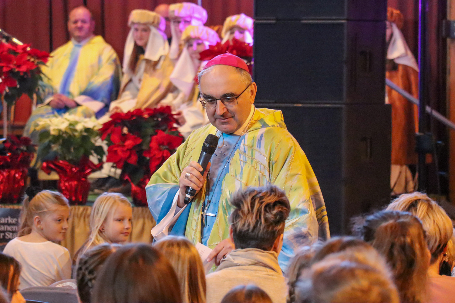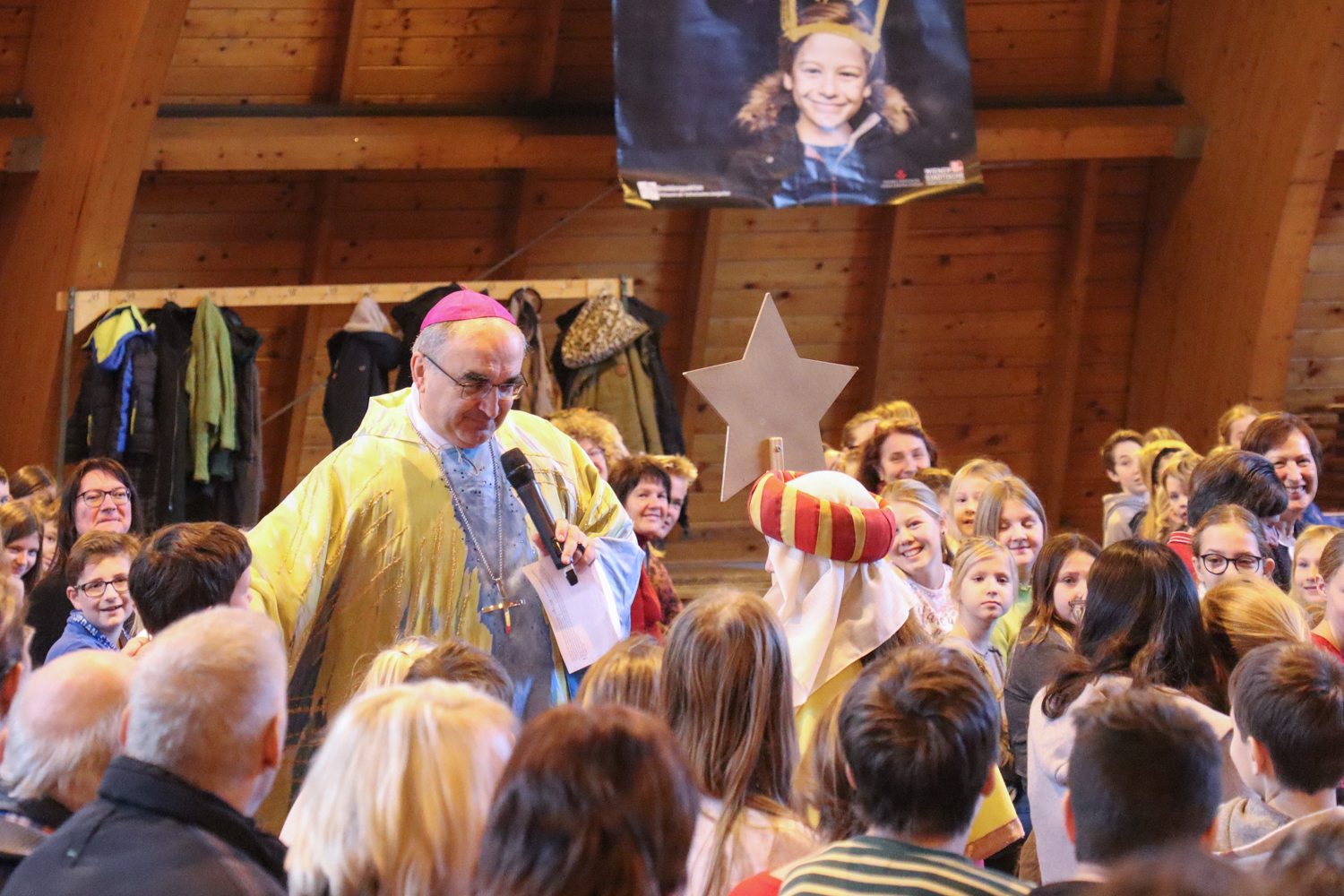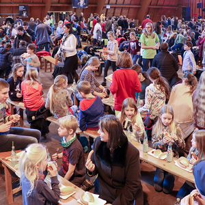 Nach dem traditionellen Würstlessen animierte eine Band die Kinder zum Mitsingen und Mittanzen. Währenddessen stand unser Bischof wieder für Selfies und Gruppenfotos zur Verfügung.