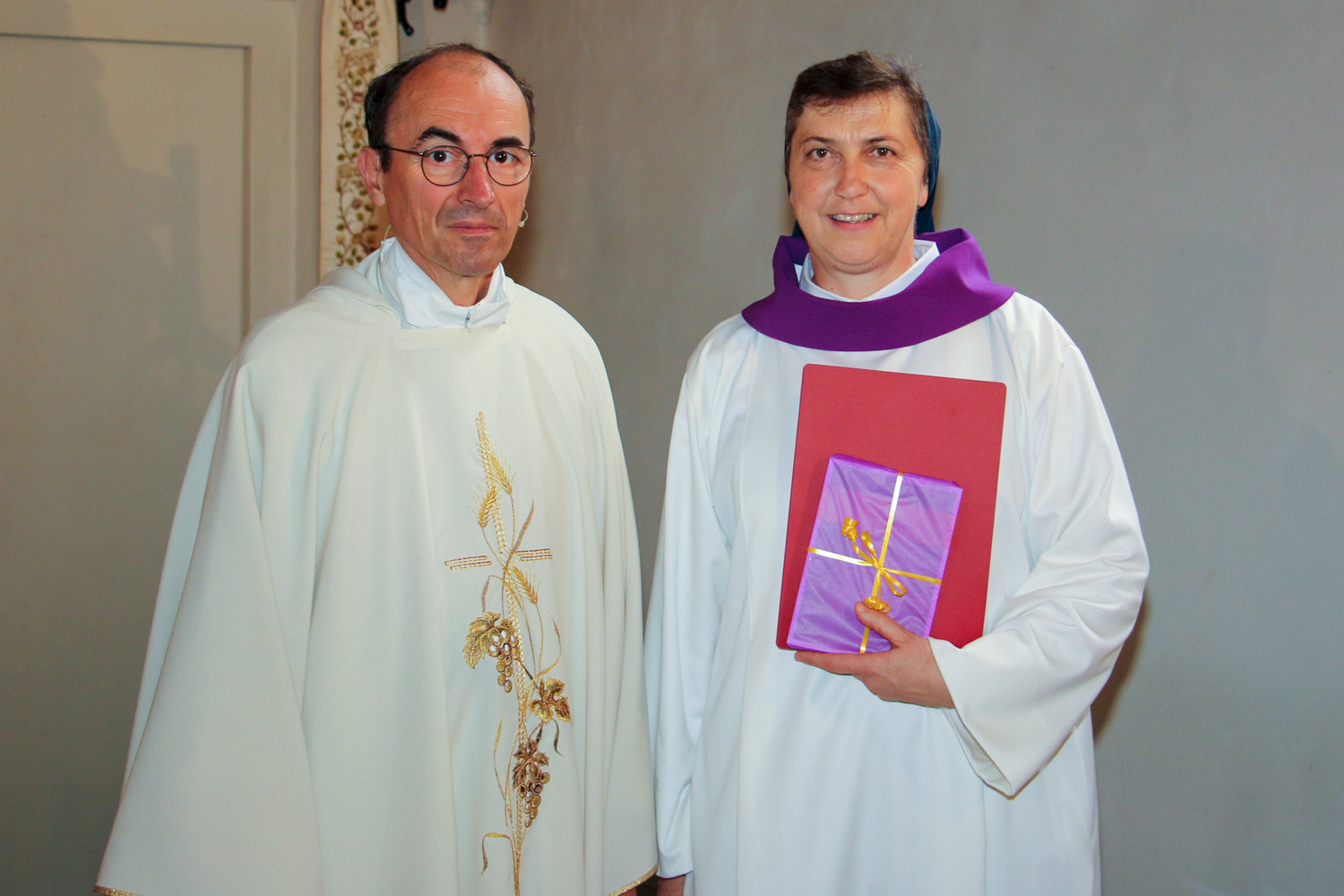 Sr. Maria Leopold hat diesen Ausbildungskurs mit sechs Modulen gemacht und ein Praktikum absolviert. Sie wurde am Freitag, den 14. Juni vom Bischof für die Pfarre gesendet und am Sonntag, den 16. Juni von Pfarrer Karner der Pfarrbevölkerung vorgestellt. Die Verantwortlichen der Diözese wünschen, dass die Begräbnisleiter ein liturgisches Kleid – eine weiße Albe – tragen.