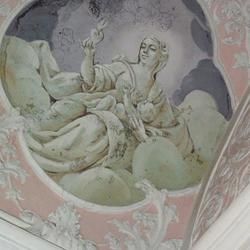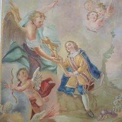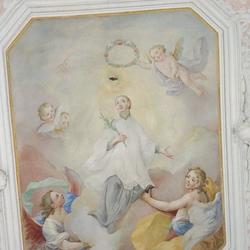 Der Kapellenraum besteht aus einem Tonnengewölbe mit zartem, besonders reich ausgebildetem Rokokostuck, der den italienischen Einfluss verrät. Die beiden Bildfelder sind mit Szenen aus dem Leben des Heiligen ausgestattet und stammen ebenfalls vom Künstler J.A. Mölk. In den vier Ecken befinden sich Bildfelder in Grau-Weiß-Schwarz-Maltechnik mit der Darstellung der drei göttlichen Tugenden (Glaube, Liebe, Hoffnung) sowie einer Pieta.