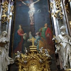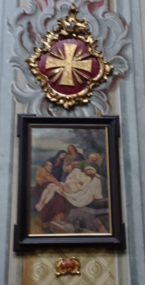 Das Fastenbild wurde zwischen 1764 und 1775 von Josef Adam Mölk in Öl auf Leinwand gemalt und 1990/91 von Frau Liselotte Reicher-Kuhna restauriert.  Es zeigt die Kreuzigung auf Golgotha, zu Füßen des toten Jesu stehen seine Mutter Maria, Maria-Magdalena und der Lieblingsjünger Johannes.