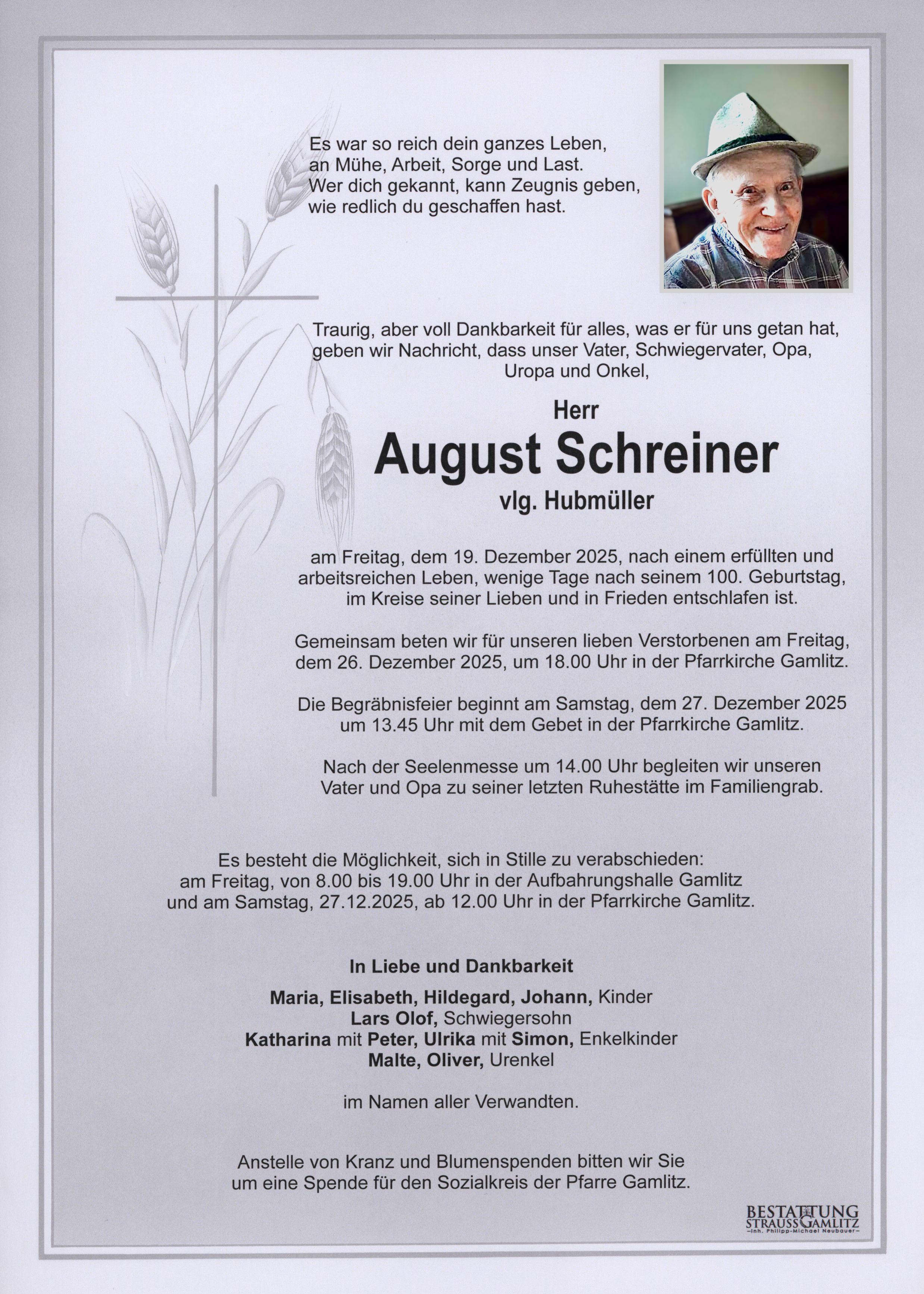 Heilige Messe am Stefanitag 26. Dezember 2025 um 09:00 Uhr