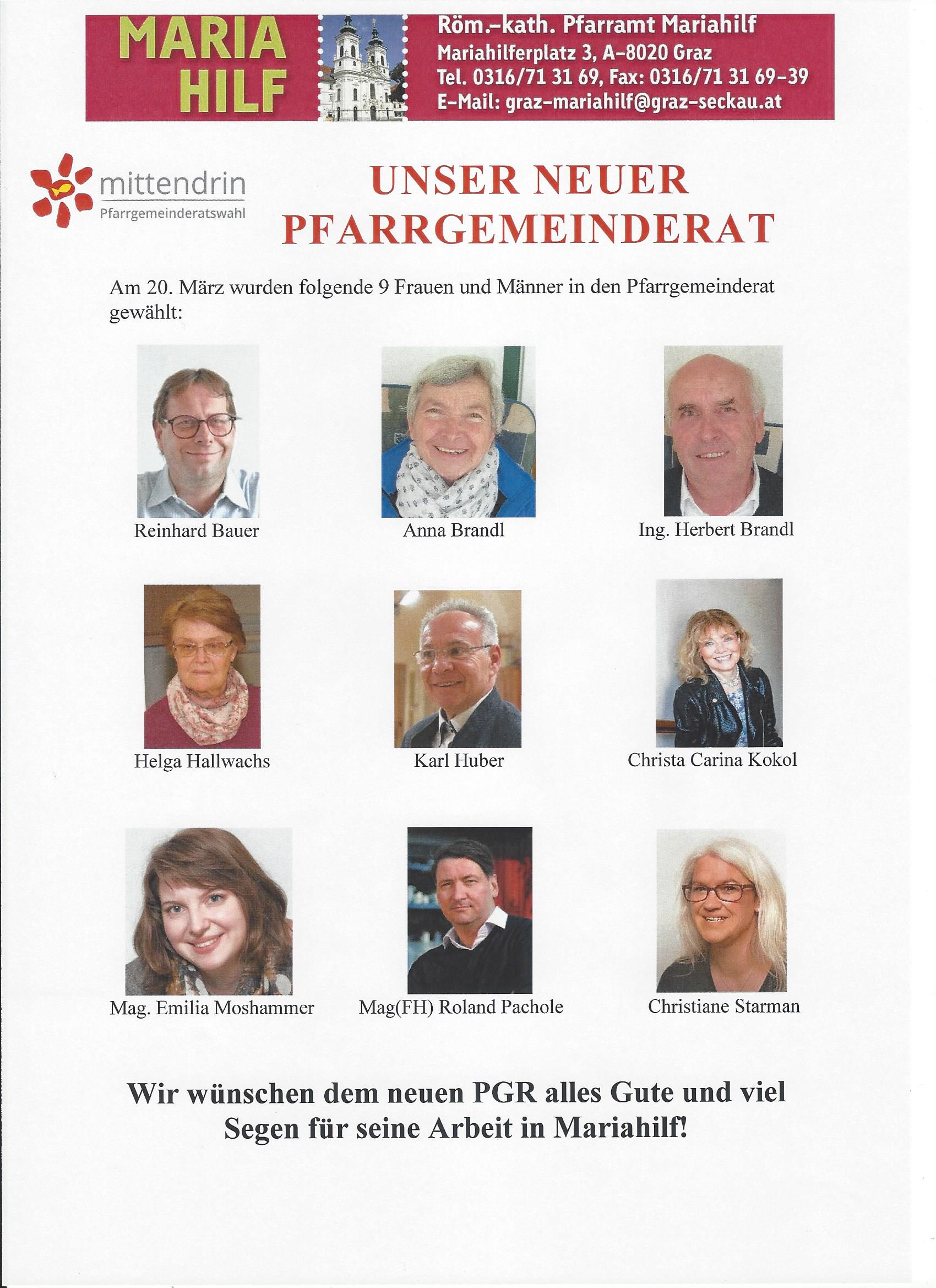 Am 20. März 2022 wurden die neuen Pfarrgemeinderäte gewählt. Hier sind sie in alphabetischer Reihenfolge.