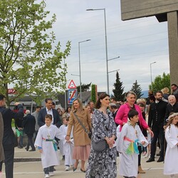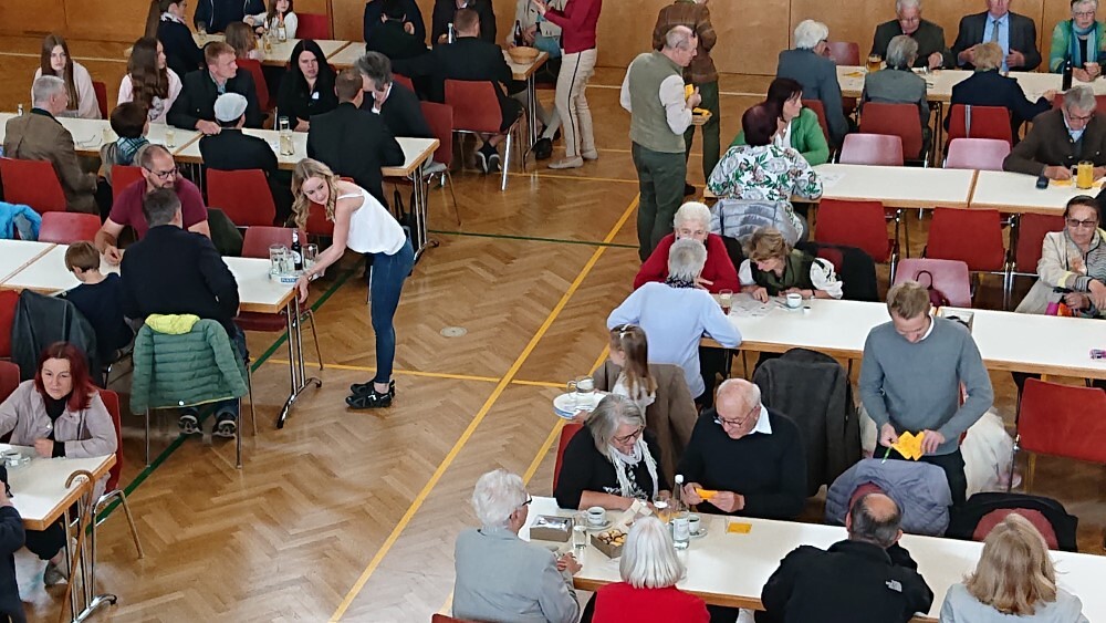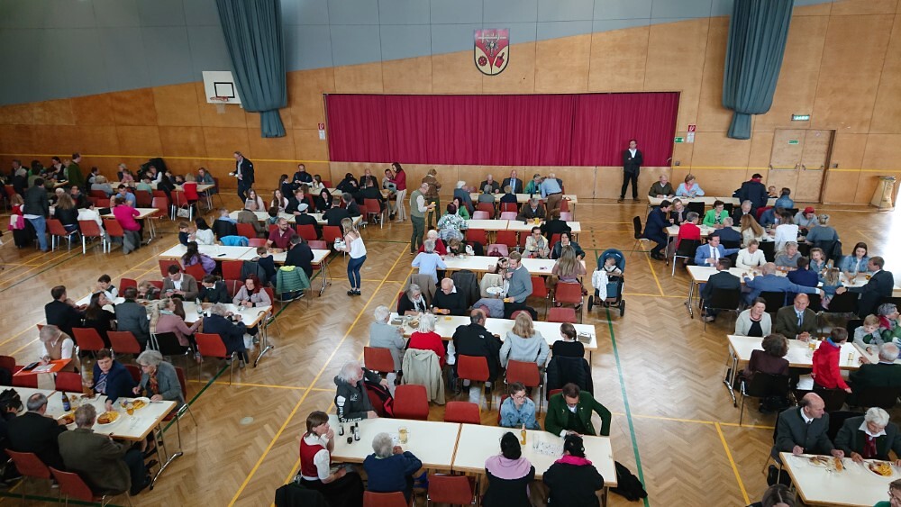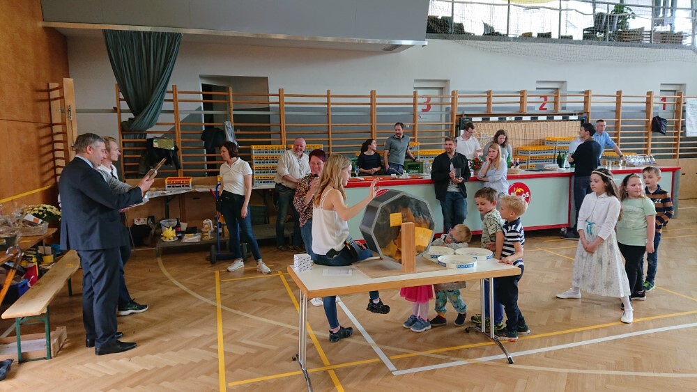 Nach der wunderschön gestalteten Erstkommunion zogen die Erstkommunionkinder in die Halle um beim Start des Pfarrfests dabei zu sein. Nachdem wir letztes Jahr richtiges Wetterglück hatten, mussten wir diesmal in die Veranstaltungshalle ausweichen. Dem Wetter zum Trotz war die Stimmung sehr gut. Das Kinderprogramm war gut besucht, viele Preise wurden verlost und natürlich gab es wieder genug zu essen und zu trinken. Obwohl diesmal besonders viele Torten gebacken wurden, waren am Schluss alle weg.