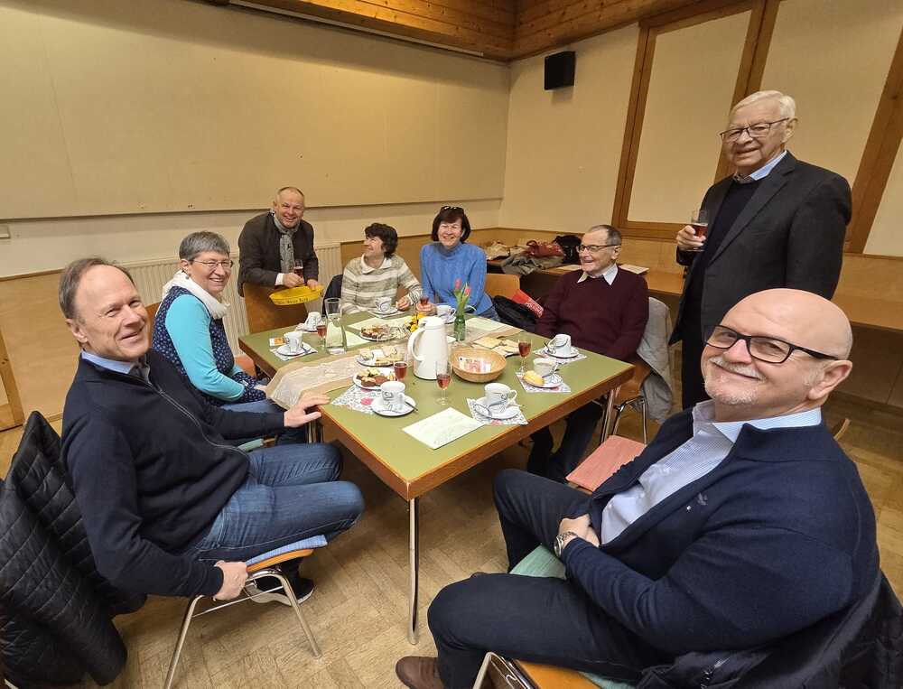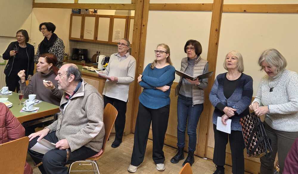 Viele folgten der Einladung und unterhielten sich gut bei Kaffee,  Kuchen und "Uhudlerprosecco" und gemeinsamen Liedern.