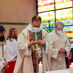Am Gründonnerstag feierten wir eine gemeinsame Seelsorgeraum-Messe in der Pfarrkirche Lieboch. Mit dabei waren drei Priester, drei Diakone, drei Pastoralreferentinnen, über 20 Ministranten und verschiedene weitere Dienste aus unseren sechs Pfarren.