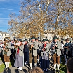 Musikalisch gestaltete eine Abordnung der MUZ von der Empore aus die heilige Messe - und auch danach beim Totengedenken mit Kranzniederlegung vor dem Kriegerdenkmal waren die Musiker*innen zur Stelle.