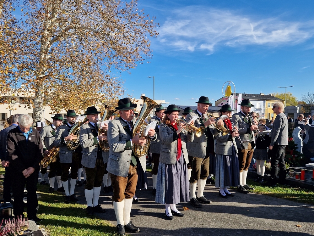 Zuvor wurde in schönen Texten und Gebeten, musikalisch umrahmt von der Marktmusik Unterpremstätten-Zettling, aller Verstorbenen gedacht. Auch wurden die Namen der im vergangenen Jahr heimgegangenen Personen nochmals laut ausgesprochen. Der aufsteigende Weihrauch verleiht den Verstorbenen besondere Würde und möge unsere Gebete zu Gott emportragen.