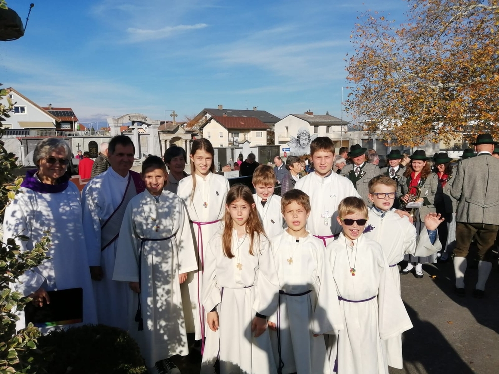 Zum Abschluss boten die bei der Feier fleißig assistierenden Minis an den Friedhof-Ausgängen gegen freiwillige Spende ihre am Vortag gebackenen Allerheiligenstriezerl an, die im Nu ausverkauft waren!