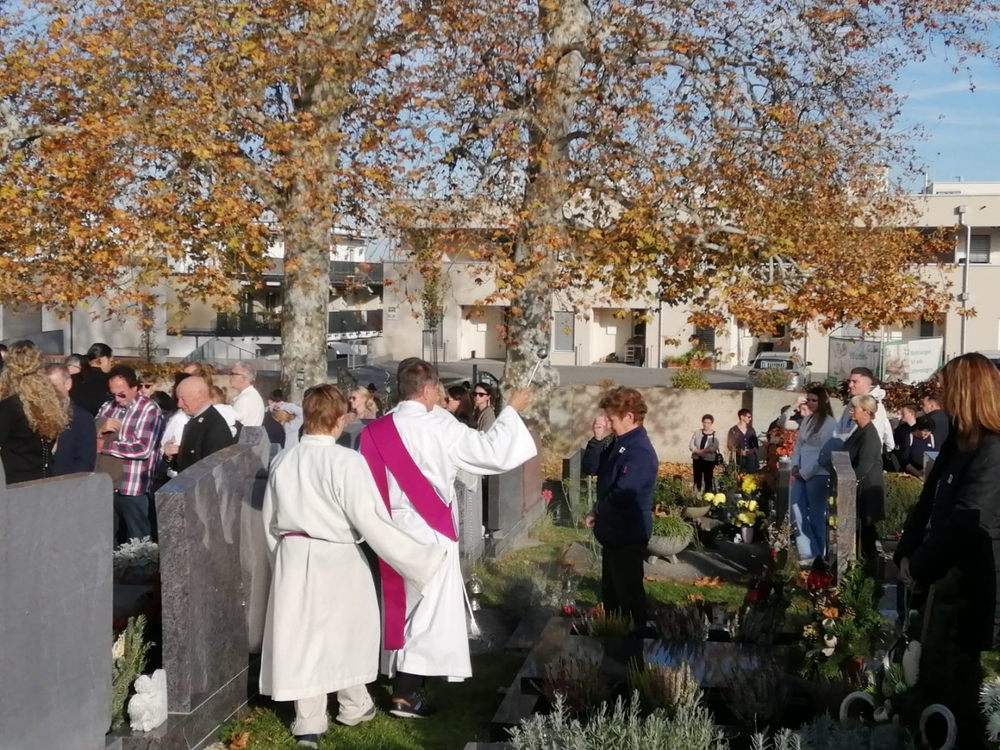 Bei strahlendem Herbstwetter segneten Diakon Franz Habith und Wort-Gottes-Feier- Leiterin Christa Habith die Gräber auf unserem Friedhof.