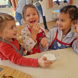 Dank Elena im Kindergarten Premstätten hatten sie neben dem Herd im Pfarrhof auch noch zwei weitere Herde in Verwendung, um die große Menge an geformten Teiglingen zu Köstlichkeiten zu verwandeln.